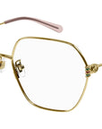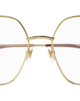 Occhiali da vista linea Gucci Logo modello GG1285O variante colore 001 oro endura lucido con astine color oro.